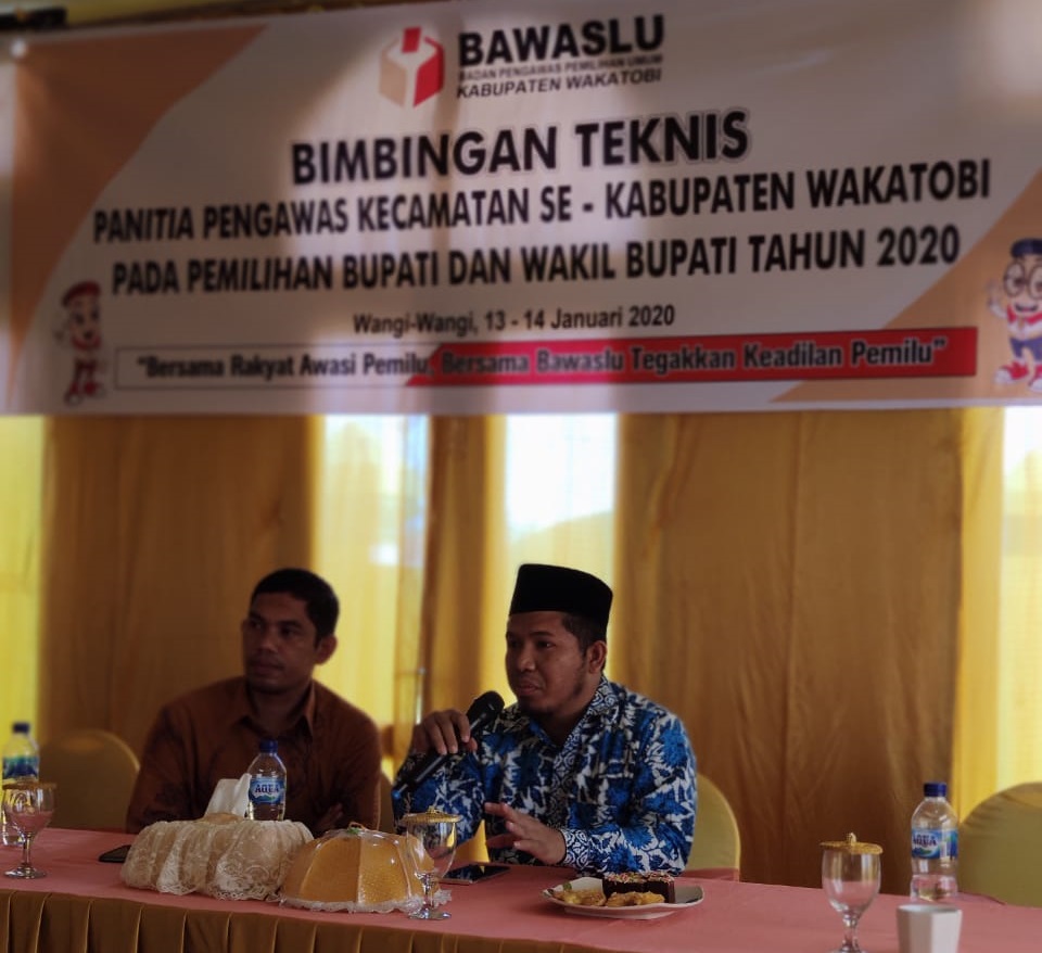 Wakatobi, Badan Pengawas Pemilihan Umum Provinsi Sulawesi Tenggara - Menghadapi penyelenggaraan Pemilihan Umum Kepala Daerah Tahun 2020, Bahari selaku Kordiv Penyelesaian Sengketa Bawaslu Sultra menjelaskan bahwa seorang pengawas pemilu yang juga sebagai penyelenggara pemilu harus selalu menjunjung tinggi nilai-nilai etika penyelenggara pemilu. Ini termasuk juga pengawas pemilu yang bersifat ad hoc seperti Panwas Kecamatan dan jajaran yang ada dibawahnya. Pengawas pemilu harus sudah mempunyai nilai dasar seperti integritas, profesionalisme dan bekerja secara ikhlas semata-mata demi kemajuan demokrasi bangsa Indonesia.