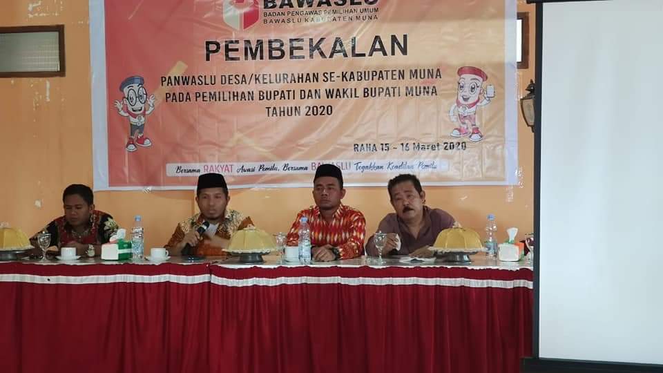Raha, Badan Pengawas Pemilihan Umum Provinsi Sulawesi Tenggara - Dalam rangka peningkatan kapasitas Pengawas Kelurahan/Desa menghadapi Pilkada serentak tahun 2020, Bawaslu Kabupaten Muna memberikan Pembekalan kepada 150 Pengawas Kelurahan/Desa se-Kabupaten Muna, 15-16 Maret di Raha Kabupaten Muna.