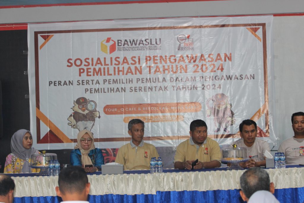 Kab. Muna Barat, Bawaslu Provinsi Sulawesi Tenggara Gelar Kegiatan Sosialisasi Pengawasan Pemilihan Tahun 2024€, pada hari Rabu, tanggal 31 Juli 2024 di Four_Q Café dan Resto Kabupaten Muna Barat Provinsi Sulawesi Tenggara /Foto : (Humas)