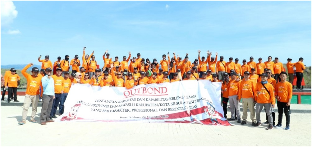 Setelah kegiatan diisi materi oleh berbagai narasumber, kemudian dilanjutkan kegiatan outbound yang diikuiti oleh seluruh staf Bawaslu Sultra dan Peserta dari Bawaslu Kab/Kota se-Sulawesi Tenggara di pantai Meleura Kabupaten Raha.