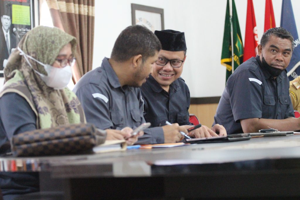 Ketua dan Anggota Bawaslu Sultra saat mengikuti Rapat Koordinasi Pemutakhiran Data Pemilih Berkelanjutan Semester II Tahun 2021 di Kantor KPU Provinsi Sultra, Senin (10/01/2022)/Foto: Hamrin