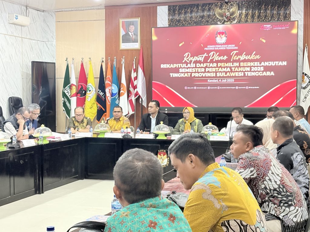 Berdasarkan Keputusan Komisi Pemilihan Umum Provinsi Sulawesi Tenggara Nomor 40 Tahun 2025 tentang Penetapan Rekapitulasi Pemutakhiran Data Pemilih Berkelanjutan Provinsi Sulawesi Tenggara Semester Pertama Tahun 2025, Rapat pleno yang dipimpin oleh Ketua KPU Provinsi Sulawesi Tenggara Suprihaty Prawaty Nengtyas didampingi Anggota menetapkan Jumlah Pemilih Pemutakhiran Data Pemilih Berkelanjutan (PDPB) Provinsi Sulawesi Tenggara sejumlah 1.871.362 Pemilih yang terdiri dari laki-laki 929.956 pemilih dan perempuan 941.406 pemilih.