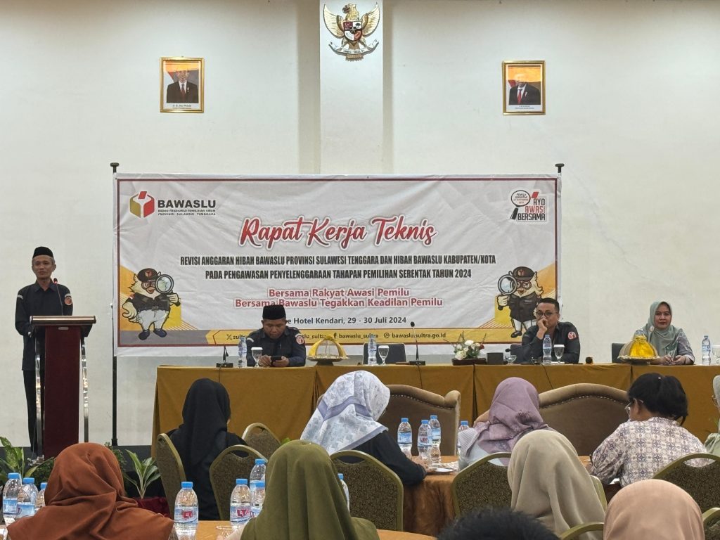 Rapat Kerja Teknis Revisi Anggaran Hibah Bawaslu Kabupaten/Kota pada Pengawasan Penyelenggaraan Tahapan Pemilihan Serentak Tahun 2024€ menjadi tema dari kegiatan yang berlangsung selama 2(dua) hari yakni pada tanggal 29 hingga 30 Juli 2024 dan bertempat di SAME Hotel, Kota Kendari Sulawesi Tenggara.