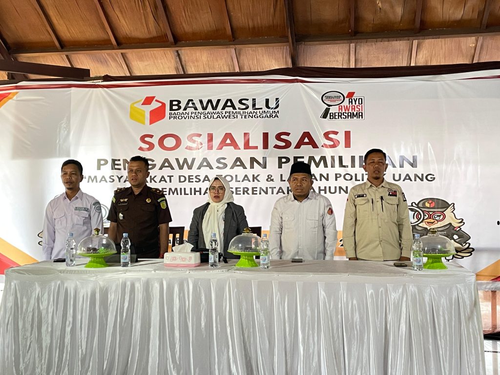 €œBahari selaku Koordiv. Pencegahan, Partisipasi Masyarakat, dan Hubungan Masyarakat Bawaslu Sultra menyampaikan dalam arahannya bahwa pelaksanaan kegiatan sosialisasi pengawasan pemilihan bagi masyarakat desa untuk menolak dan melawan politik uang pada Pemilihan Serentak Tahun 2024 tentunya untuk meningkatkan kesadaran Masyarakat, seta membuat masyarakat lebih sadar akan pentingnya pemilihan yang bebas dari politik uang, €œterangnya.