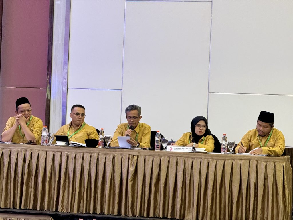 Ketua dan Anggota Bawaslu dalam Rapat Pleno terbuka Rekapitulasi Hasil Perhitungan Perolehan Suara tingkat Provinsi Sulawesi Tenggara di Hotel Claro, Kendari, Rabu (6/3/2024)/foto: Humas Bawaslu Sultra.