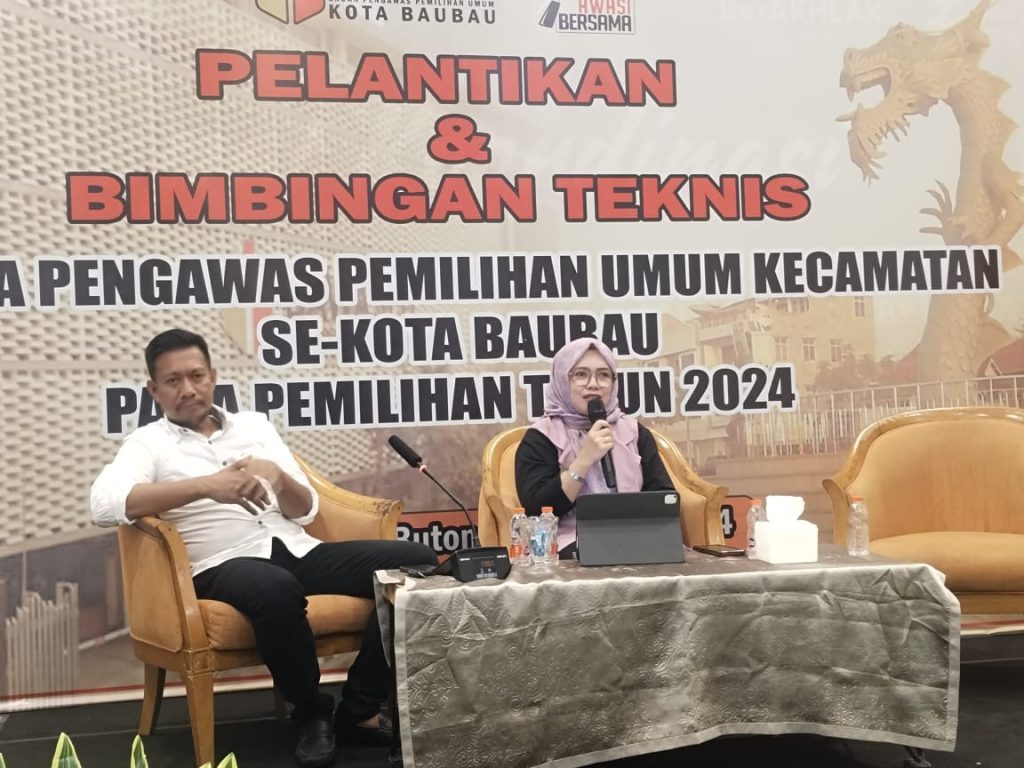 Kota Bau-Bau, Badan Pengawas Pemilihan Umum Kota Bau-Bau, Anggota Bawaslu Sultra Menghadiri Pelantikan dan Bimtek Panitia Pengawas Pemilihan Kecamatan (Panwascam) se-Kota Bau-Bau Pada Pemilu Serentak Tahun 2024, pada hari Jumat, tanggal 24 Mei 2024 di Villa Nirwana Hotel Bau-Bau, Kota Bau-Bau/Foto :(Thity)