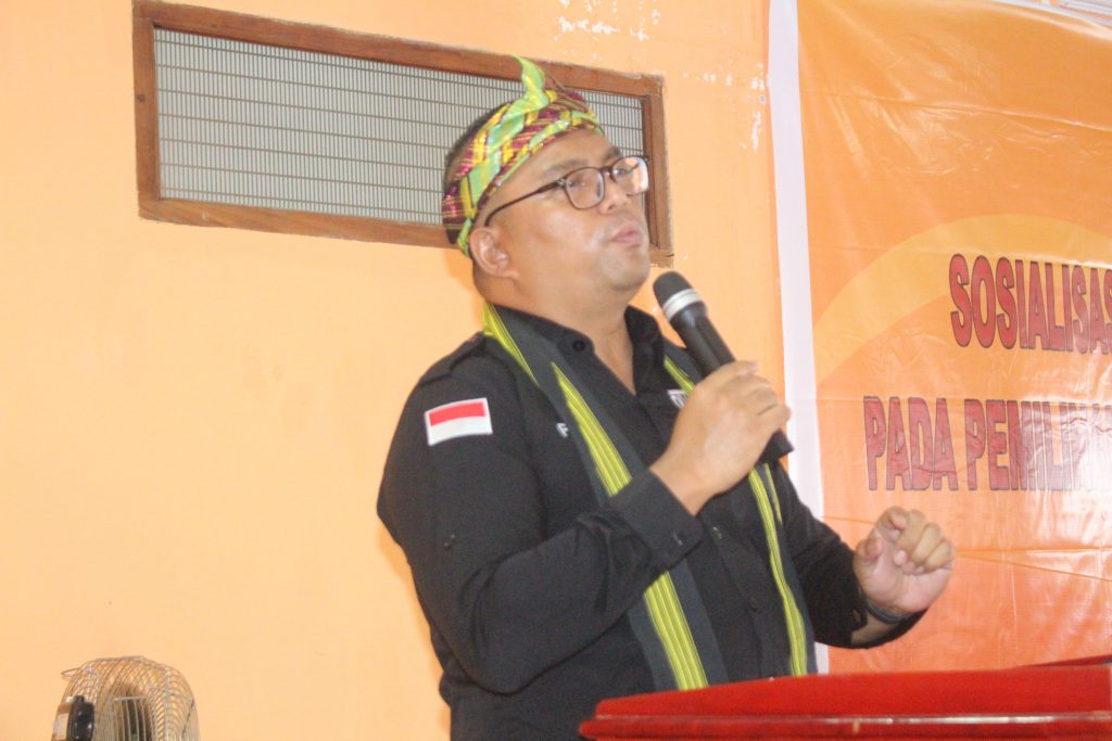 Anggota Bawaslu Fritz Edward Siregar saat memberikan arahan dalam kegiatan Sosialisasi Produk Hukum Bawaslu Pada Pemilihan Bupati dan Wakil Bupati Muna Tahun 2020 di Kabupaten Muna, Sulawesi Tenggara, Jumat (18/09/2020)/Foto: Fandy