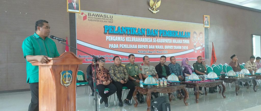 Kolaka Timur, Badan Pengawas Pemilihan Umum Provinsi Sulawesi Tenggara €“ Ketua Bawaslu Sultra menghadiri Pelantikan dan Pembekalan Pengawas Kelurahan/Desa Se - Kabupaten Kolaka Timur Pada Pemilihan Bupati dan Wakil Tahun 2020, 14 Maret 2020.
