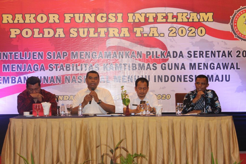 Kendari, Badan Pengawas Pemilihan Umum Provinsi Sulawesi Tenggara €“ Ketua Bawaslu Sultra Hamiruddin Udu menjadi narasumber dalam kegiatan Rakor Fungsi Intelkam Polda Sultra Tahun Anggaran 2020 dengan tema €œFungsi Intelijen Siap Mengamankan Pilkada Serentak 2020 dan Menjaga Stabilitas Kamtibmas Guna Mengawal Pembangunan Nasional Menuju Indonesia Maju€ Rabu (11/3/2020) bertempat di Swissbel Hotel Kendari.