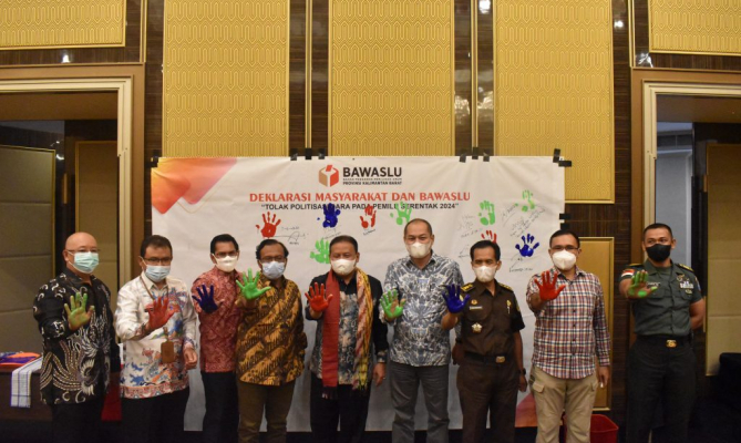 Singkawang, Badan Pengawas Pemilihan Umum- Ketua Bawaslu Abhan menghadiri sekaligus membuka secara resmi kegiatan Sosialisasi Penindakan Pelanggaran dengan tema Pemilu Serentak 2024 Bebas Pelanggaran Politisasi SARA di Kalimantan Barat (Kalbar). Dalam forum itu turut dilakukan deklarasi tolak politisasi Suku, Agama, Ras dan Antargolongan (SARA) dalam Pemilu 2024.