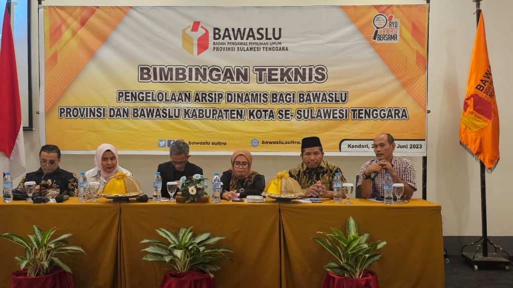 Kota Kendari, Badan Pengawas Pemilihan Umum Provinsi Sulawesi Tenggara €“ Pembukaan Kegiatan Bimbingan Teknis Pengelolaan Arsip Bagi Bawaslu Provinsi dan Bawaslu Kabupaten/Kota Se €“ Sulawesi Tenggara, pada hari Minggu, 25 Juni 2023 di Same Hotel Kendari/Foto : (Wawan /Humas Bawaslu Provinsi Sulawesi Tenggara).