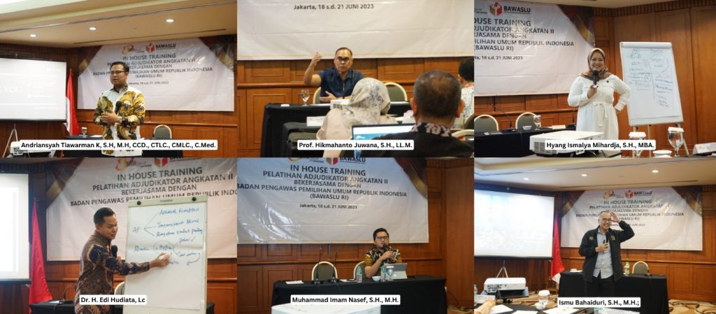 Justitia Training Center kembali berkolaborasi dengan Pusat Penelitian Pengembangan dan Pendidikan Latihan Badan Pengawas Pemilihan Umum Republik Indonesia (Puslitbang Diklat BAWASLU RI), sukses selenggarakan In House Training Pelatihan Adjudikator di Hotel Millenium Kebun Sirih Jakarta.