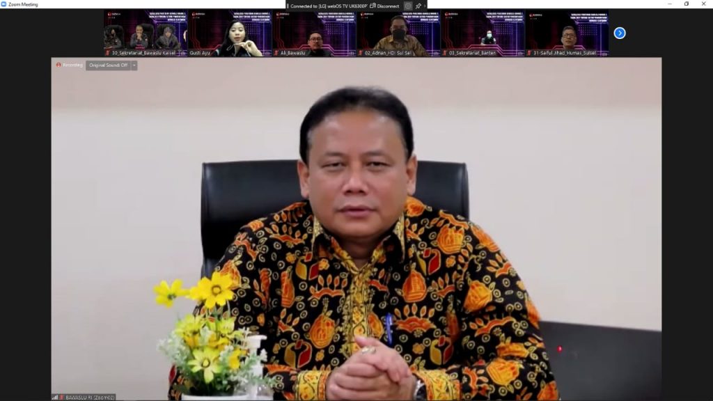 Ketua Bawaslu Abhan saat menyosialisasikan Perbawaslu SPBE secara virtual, Senin (17/1/2022)/foto: Publikasi dan Pemberitaan Bawaslu.