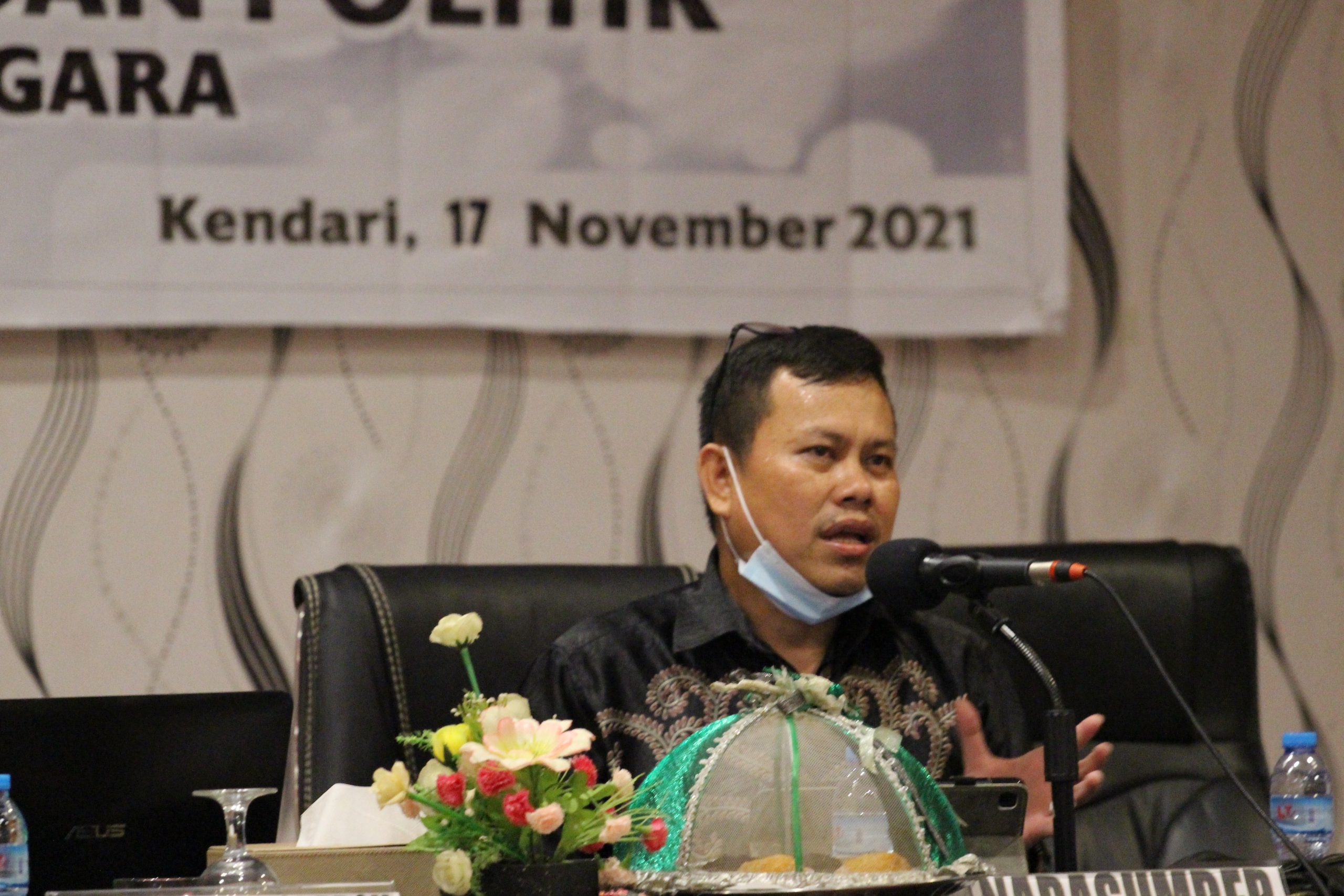 Anggota Bawaslu Sultra, Ajmal Arif saat memberikan paparan materi pada kegiatan Pendidikan Politik dan Demokrasi oleh Kesbangpol Sultra, Rabu (17/11/2021)/Foto: Humas Bawaslu Sultra