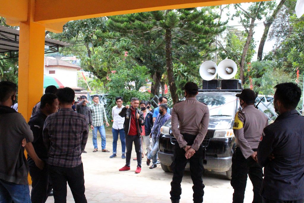 Setelah mendengarkan orasi, Ketua dan Anggota Bawaslu Sultra meminta kepada para pendemo untuk masuk ke kantor Bawaslu Sultra guna mendengarkan semua tuntutan dari para pendemo.