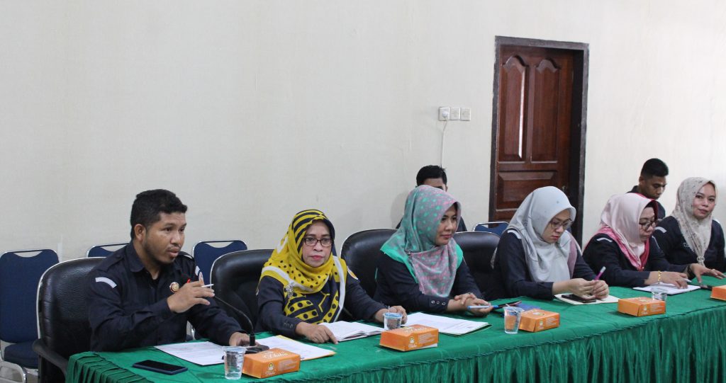 Anggota Bawaslu Sultra Bahari dan Sitti Munadarma beserta Pejabat Struktural Bawaslu Sultra saat memberikan sambutan dalam Kunjungan Kerja DPRD Provinsi Sulawesi Tenggara, Selasa (10/3/2020) di Aula Kantor Bawaslu Sultra/Foto: Wawan