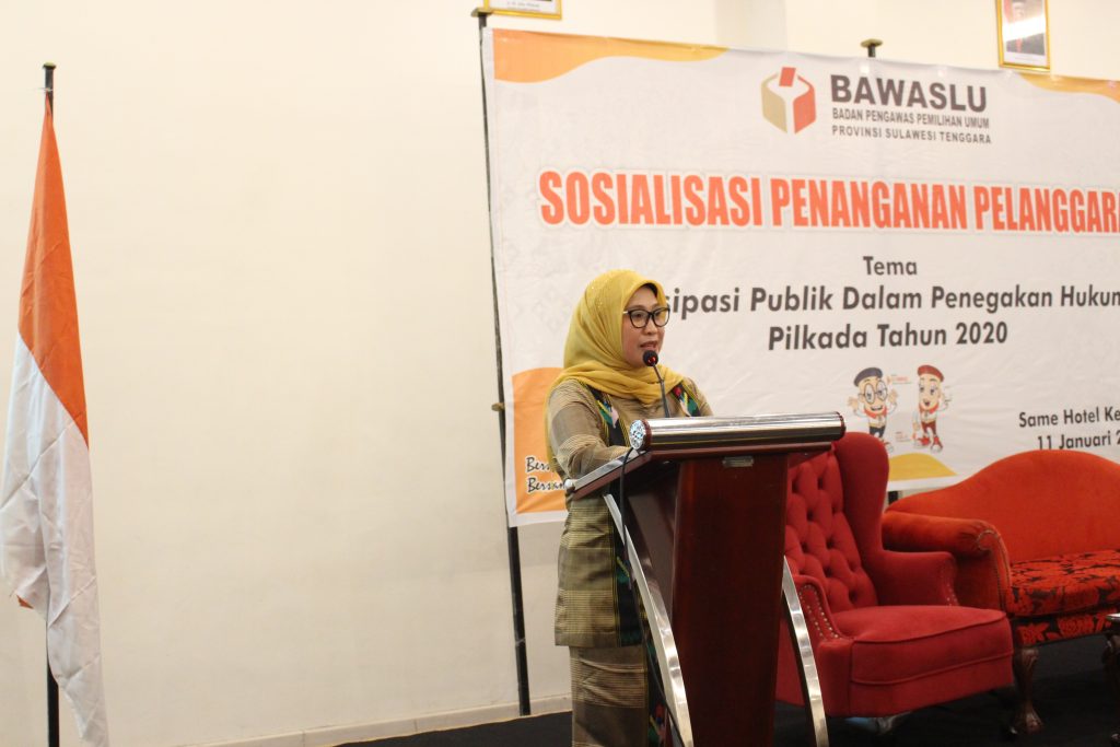 Kendari, Badan Pengawas Pemilihan Umum Provinsi Sulawesi Tenggara - Menghadapi Pemilihan Kepala Daerah (Pilkada) tahun 2020 mendatang, Bawaslu Sultra menggelar kegiatan Sosialisasi Penanganan Pelanggaran dengan tema €œPartisipasi Publik Dalam Penegakan Hukum Pemilihan Kepala Daerah (PILKADA) Tahun 2020€ bertempat di Same Hotel Kota Kendari, Sabtu (11/1/2020).