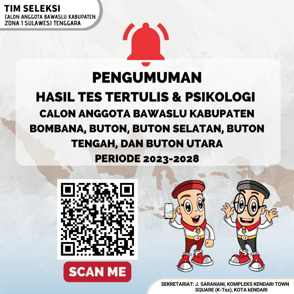 Pengumuman Hasil Tes Tertulis dan Psikologi Calon Anggota Bawaslu Kabupaten Zona I Sultra