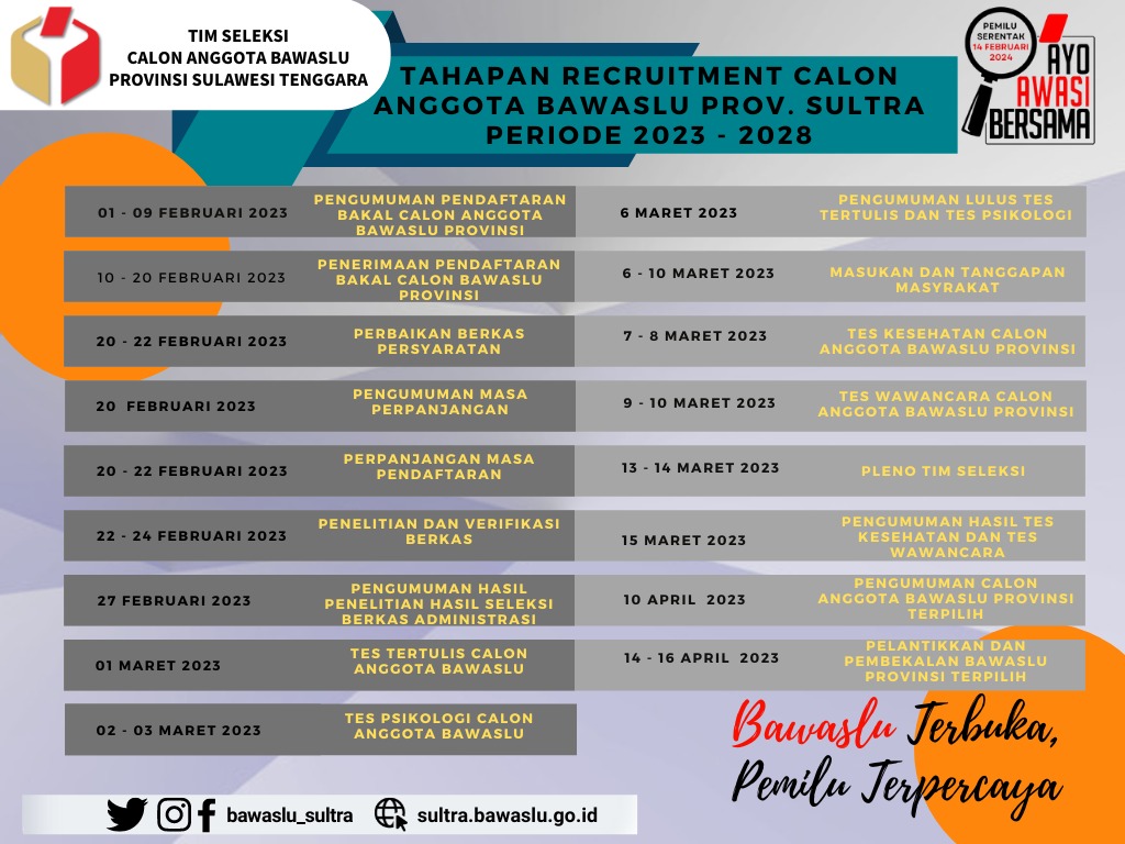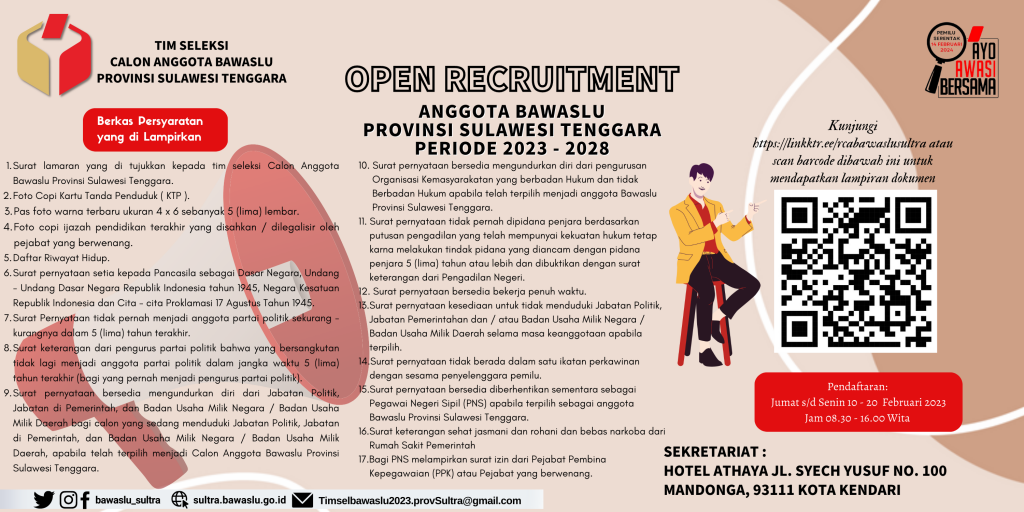 Pengumuman Pendaftaran Calon Anggota Bawaslu Provinsi Sulawesi Tenggara Periode 2023-2028